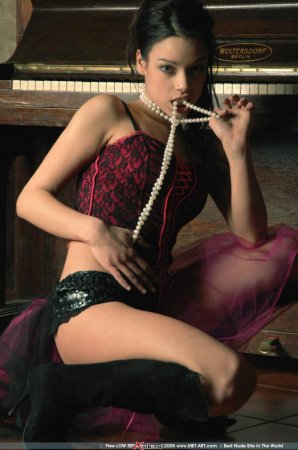 В черных сапожках на полу позирует шикарная молодая красивая голая модель и показывает свое сногсшибательное чарующее тело, свою стройную привлекательную фигуру, свои шикарные сиськи. Многие мужчины хотят оказаться рядом с ней.