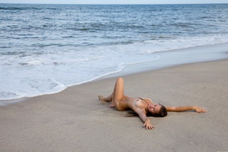 Эта сексапильная красотка пошла на море, чтобы немного искупаться, но она поняла , что купаться в купальнике это не в её стиле! Голенькая мокренькая девица показывает свою красивую попочку и отменную кисочку... Сексуальная красотка в мокрой маечке... Секси...